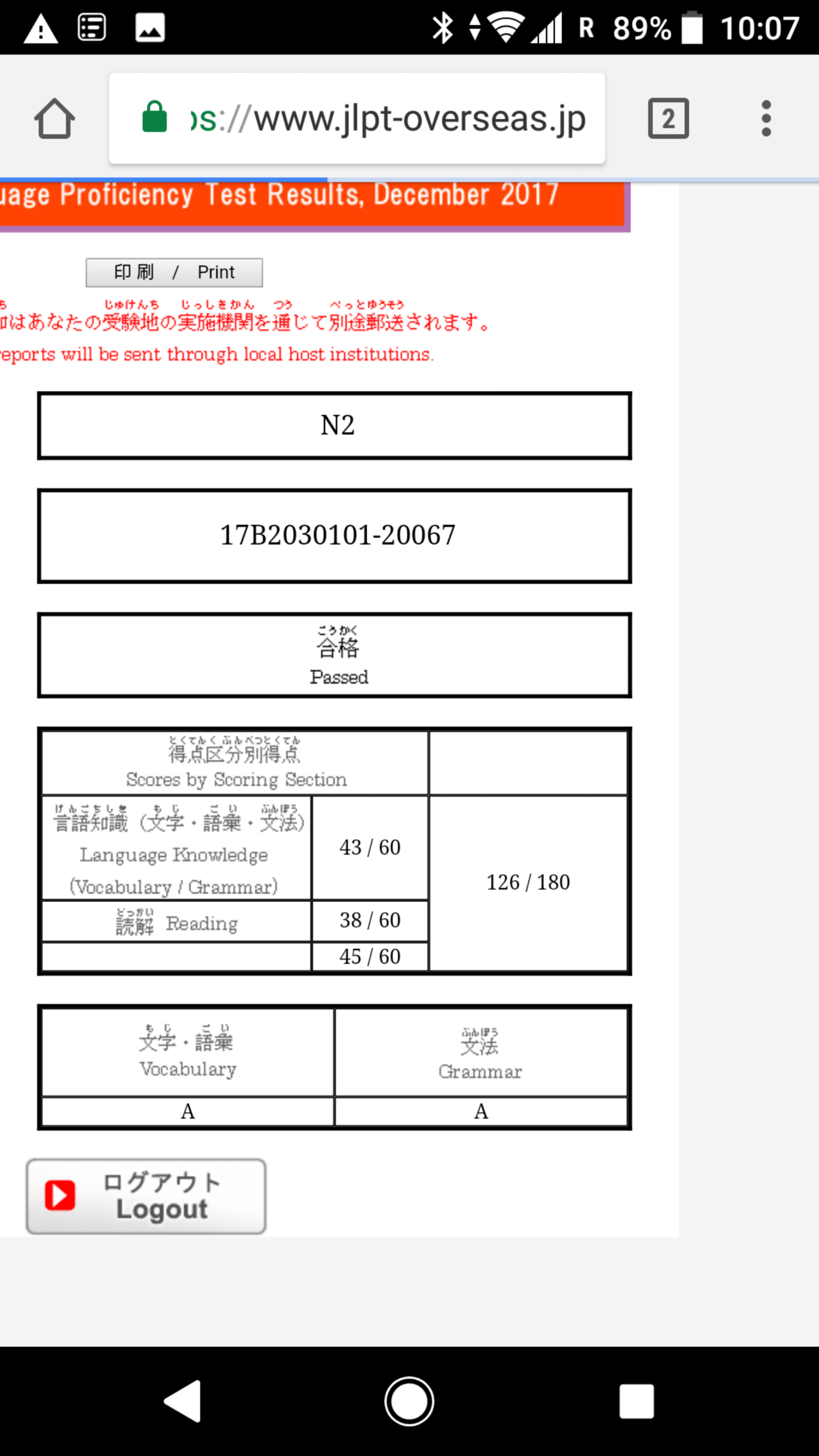 Received a testimonial from my student who studied with me only for 2 months and passed N2.